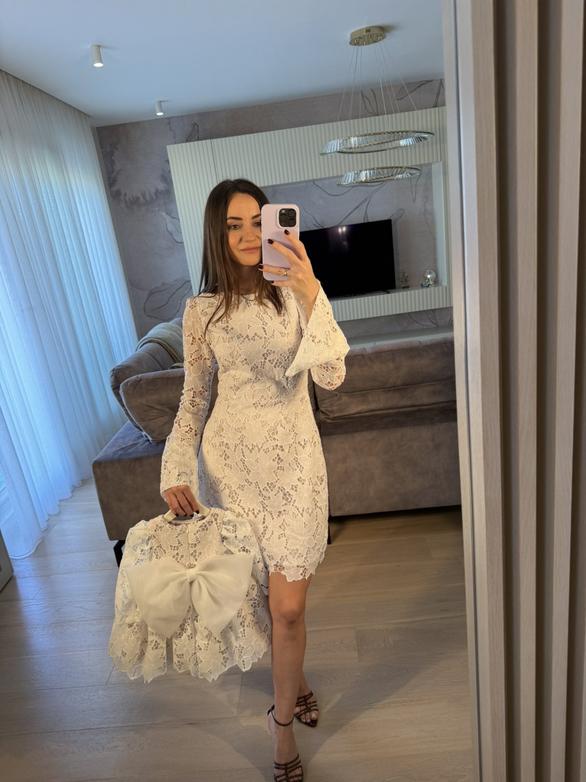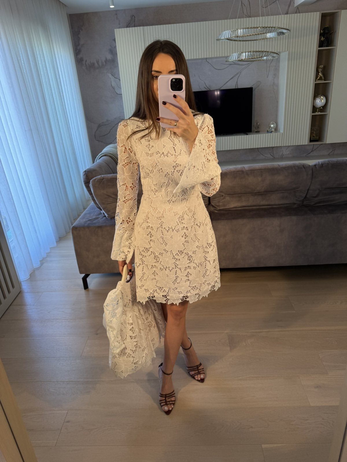 uska svecana haljina Kloe od bele cipke i satena sa dugim rukavima