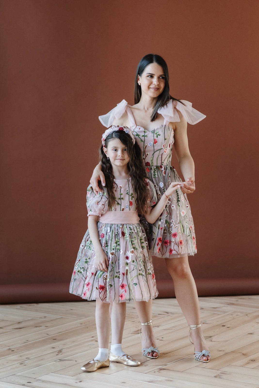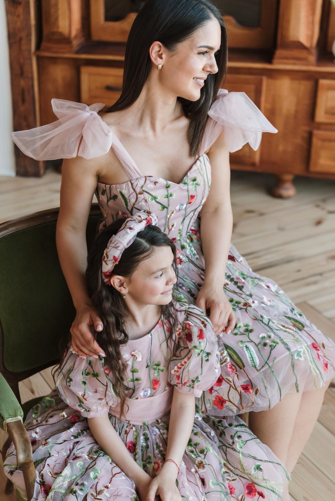 Izrađene od pažljivo biranih materijala, ove svečane haljine za mamu i ćerku spajaju razigranost, eleganciju i moderan stil u jedan upečatljiv komplet.
