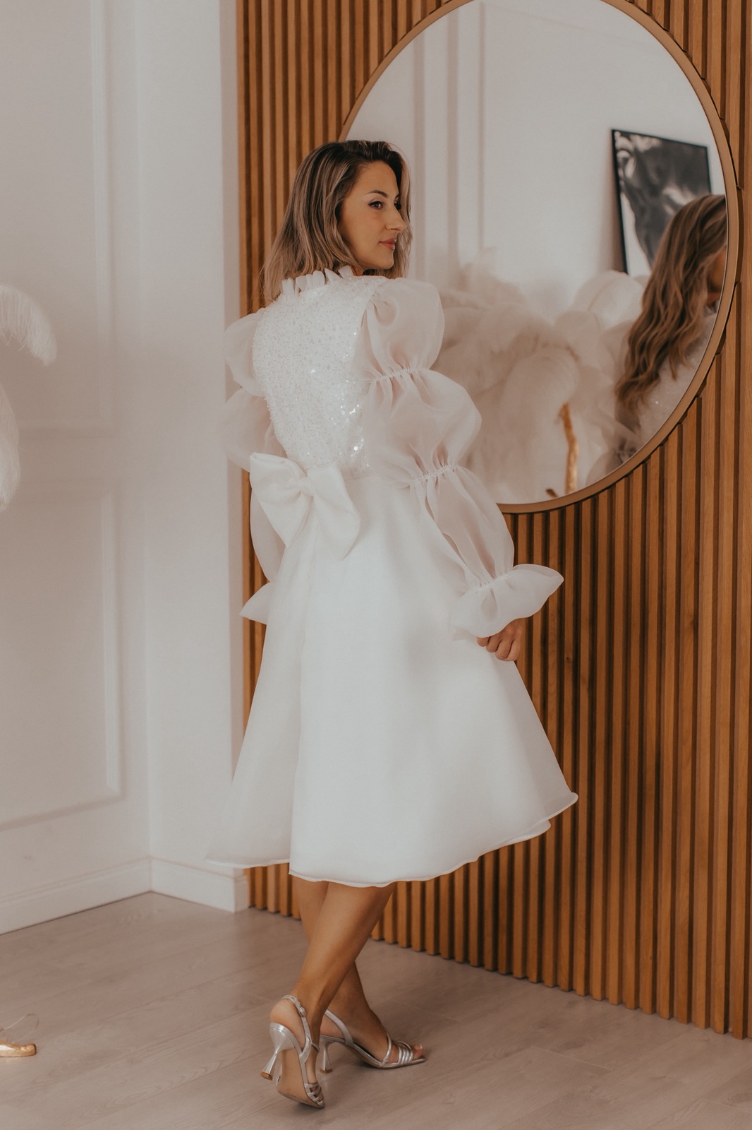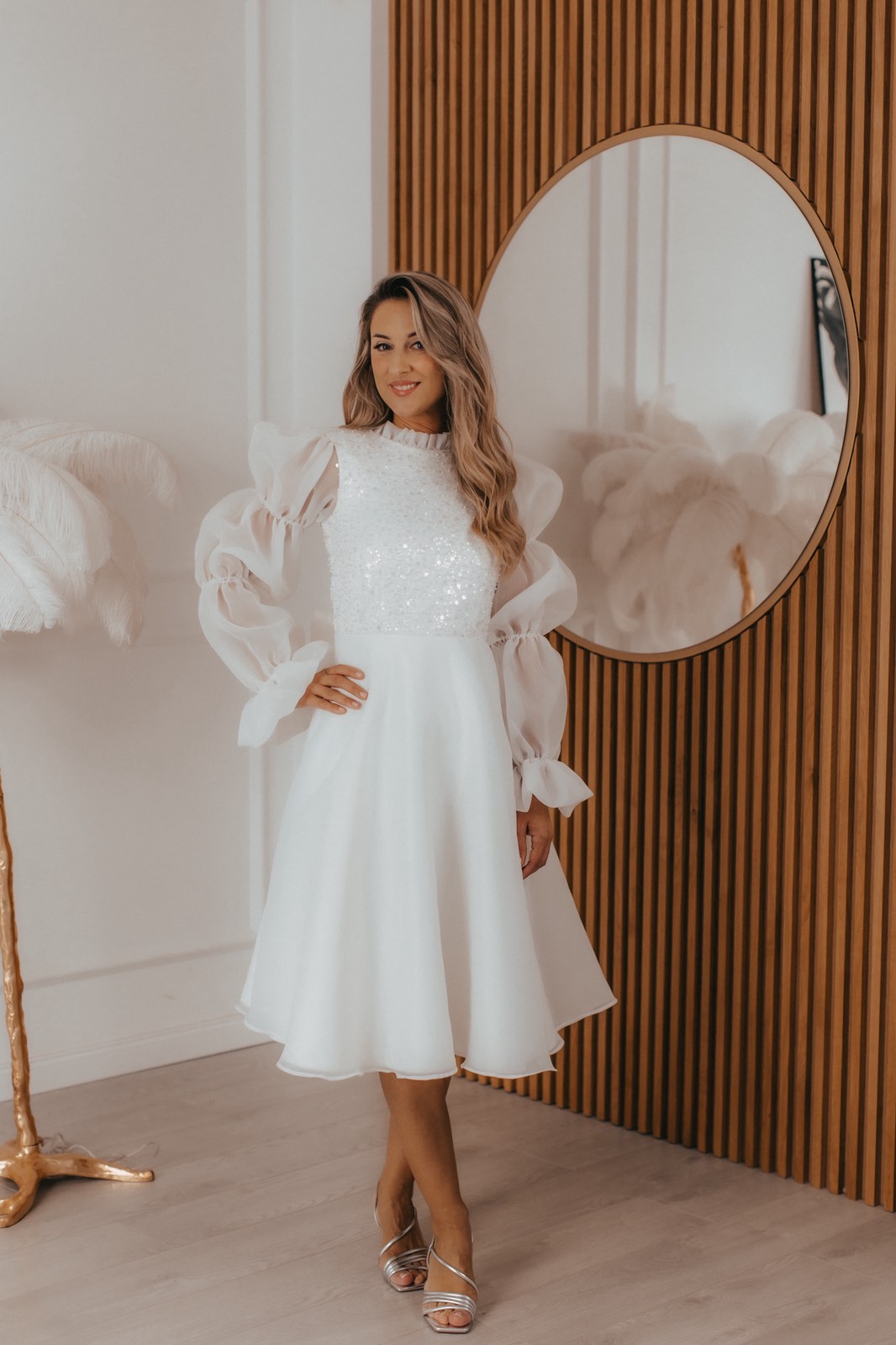 Haljinica „Vita” je posebna po svojoj eleganciji. Magija koju stvara svetlucava čipka u gornjem delu je neopisiva. Kada se u haljinici „Vita” negde pojavite, budite sigurni da će Vašu eleganciju zapamtiti svi.