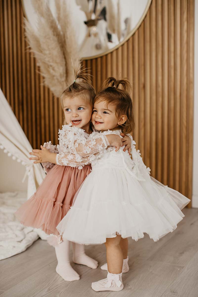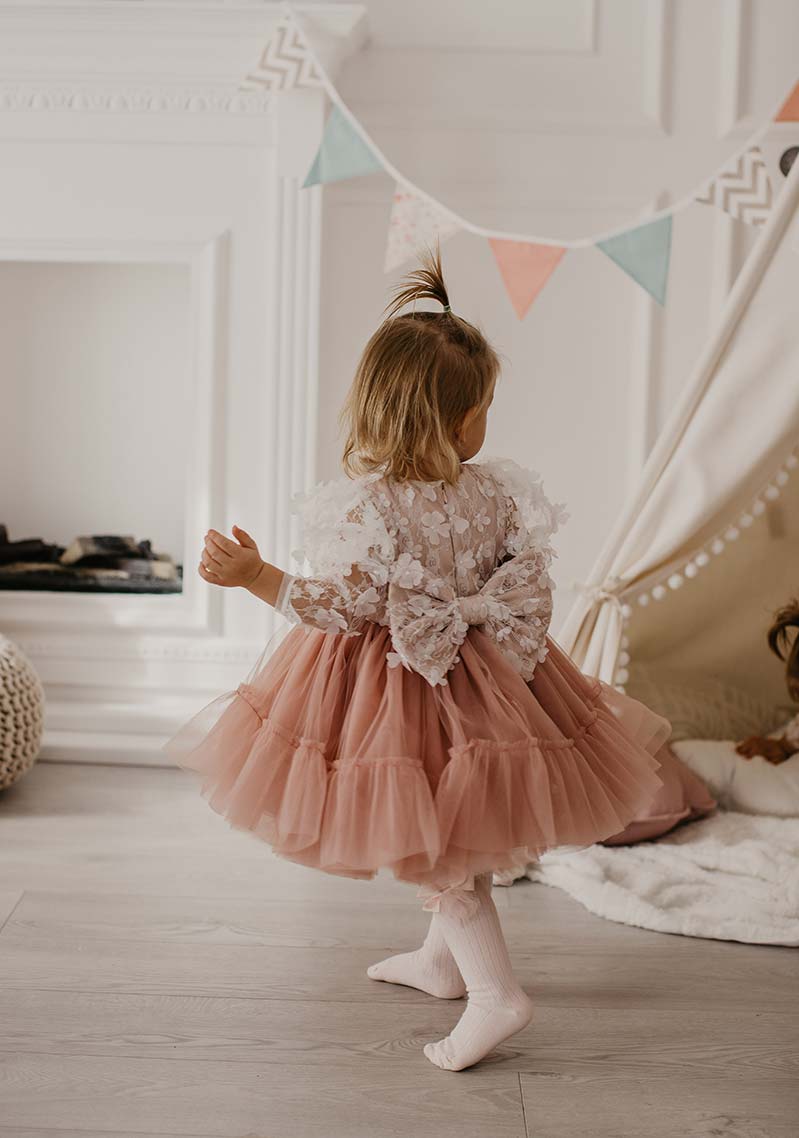 Tu filozofiju pratili smo i kada je kreirana svečana haljina za devojčice Emma. Iako odiše elegancijom, ona je potpuno praktična za devojčice i one u njoj uživaju. Lako se oblači, prati njihovo kretanje i ne ometa ih u zabavljanju. Ono što devojčice kod ovog modela hipnotiše jeste gornji deo haljine, koji je izrađen od fine 3D čipke sa mekim belim cvetićima.