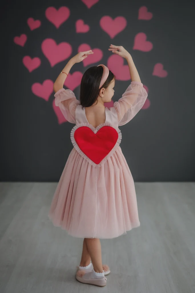 Iako haljina izgleda prelepo spreda, najlepsi detalj na njoj je veliko srce na ledjima . Mame je biraju za rodjendane i sve vrste proslava koje zahtevaju otmenost i dobar stil, a devojcice u ovom modelu ne ostaju neprimecene.