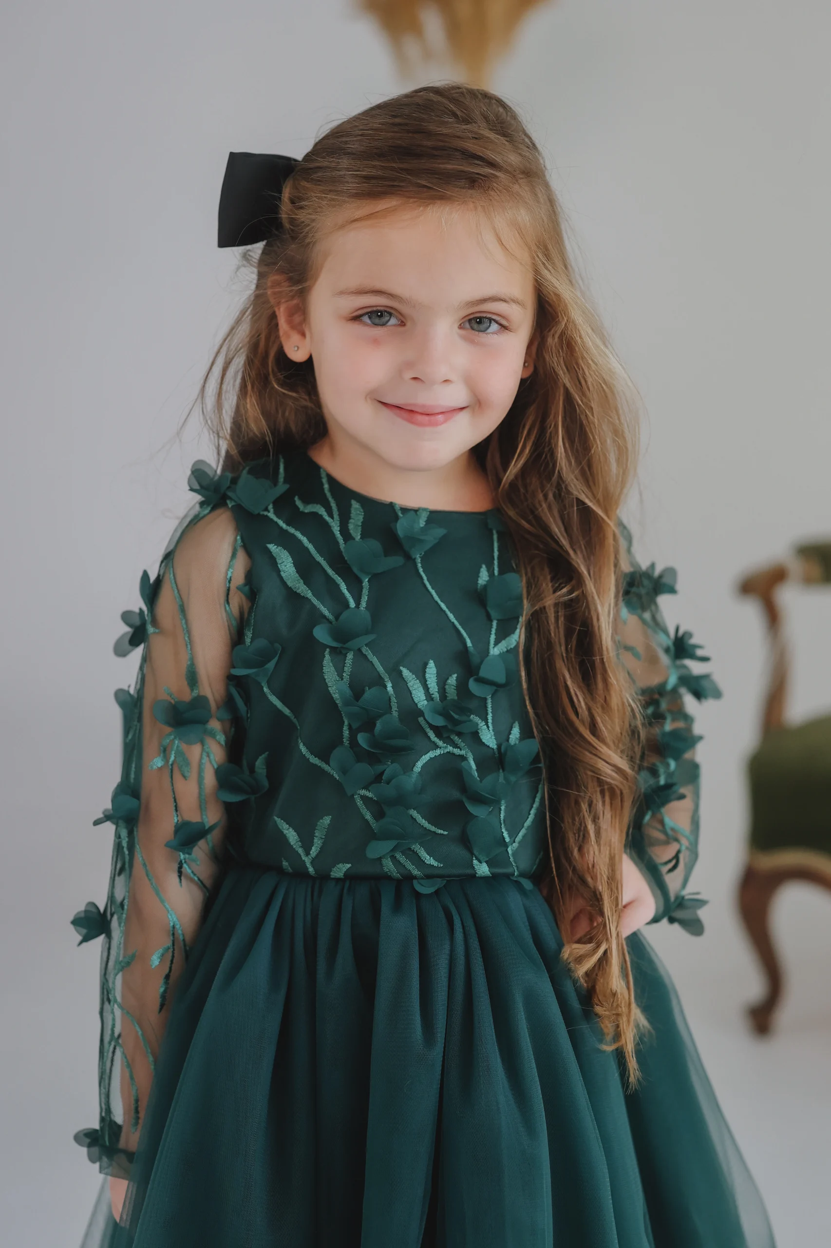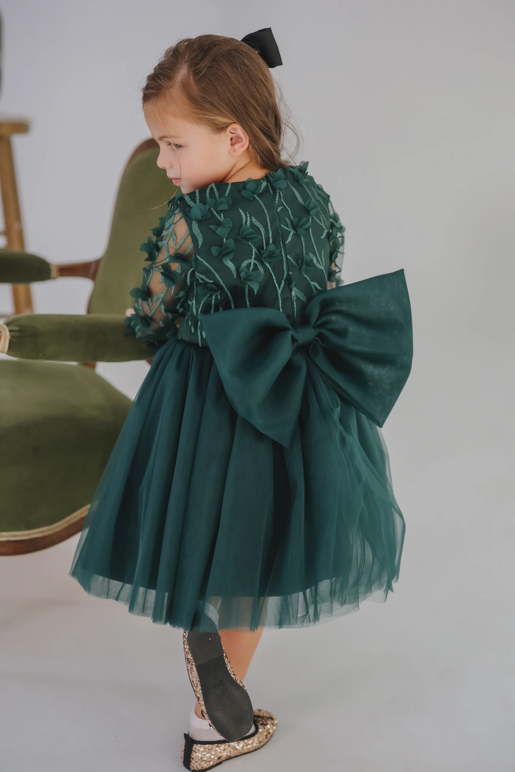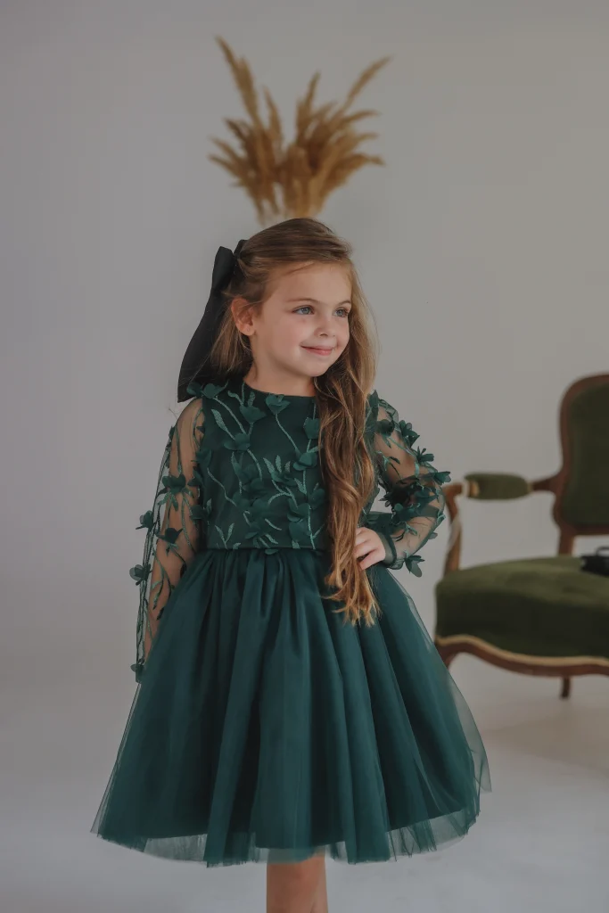 Haljina za devojčice u predivnoj tamnozelenoj boji donosi eleganciju i sofisticiranost, savršena za svečane prilike.